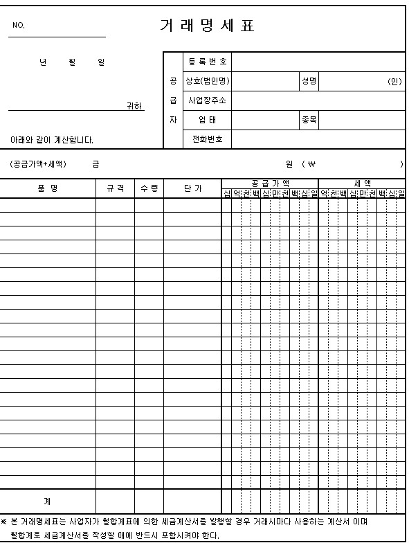 거래명세서 작성 시 주의사항