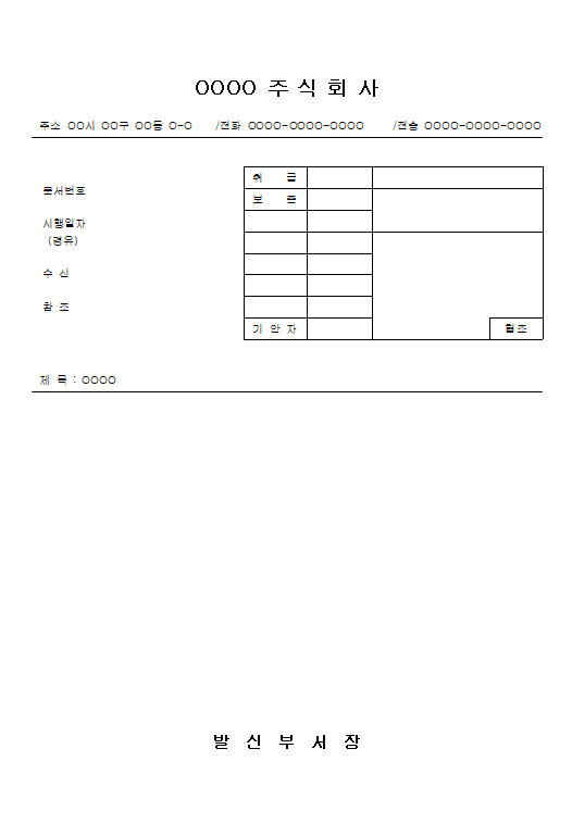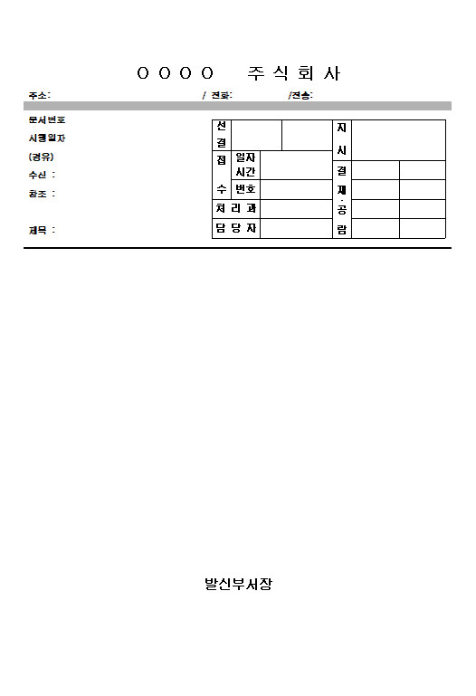- 수신자 정보는 중간 부서를 포함하거나 공란으로 두어도 됩니다.