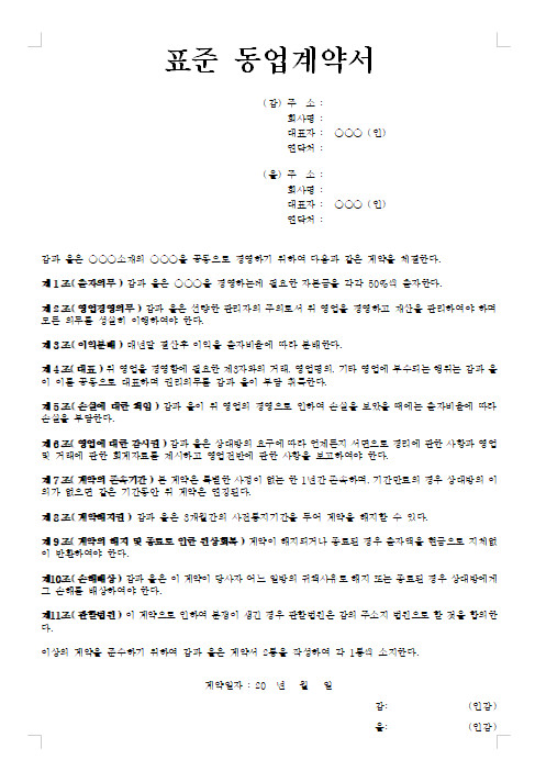 동업계약서 양식 다운로드