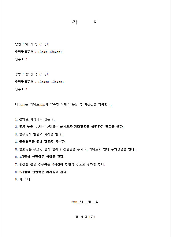 부부각서 양식 한글 hwp