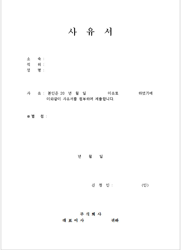 - 사유서: 자신의 잘못이 아닌 경우에 상황을 설명하는 자료.