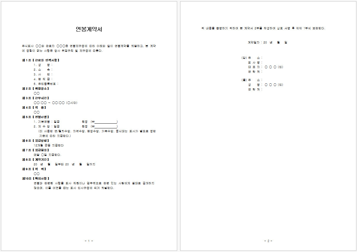 연봉계약서 한글 양식