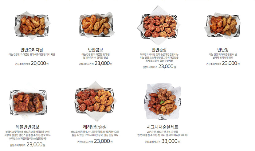 교촌 치킨 반반 메뉴 가격