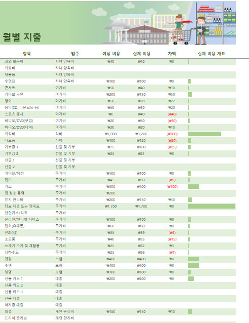 가계부 작성으로 지출 줄이기 엑셀 xls 양식 다운로드
