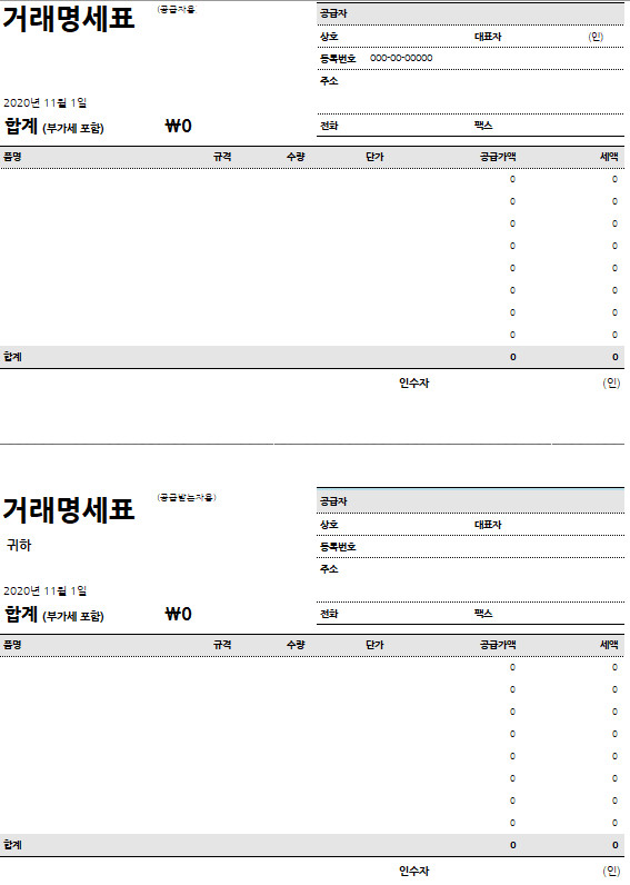 - 정확성: 거래명세표에는 정확한 정보 입력이 필수적입니다.