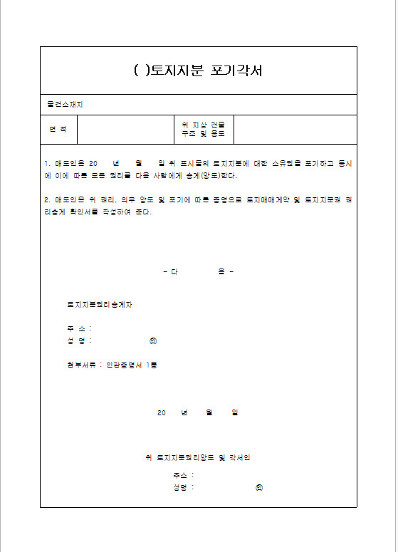 4. 포기각서: 권리나 청구권을 포기하는 내용의 문서.