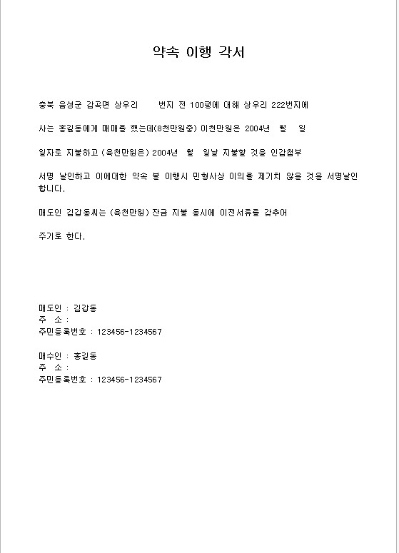 - 당사자 정보 및 서명: 당사자들의 정확한 인적 사항과 서명날인이 필요합니다.