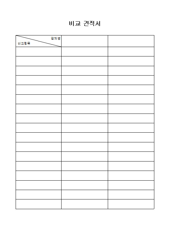 비교견적서 간편 양식 한글 hwp 다운 작성 방법