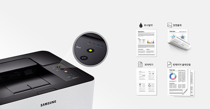 1. 에코 모드: 토너와 용지 절약을 위한 원터치 에코 버튼으로 간편하게 에코모드로 전환 가능합니다.
