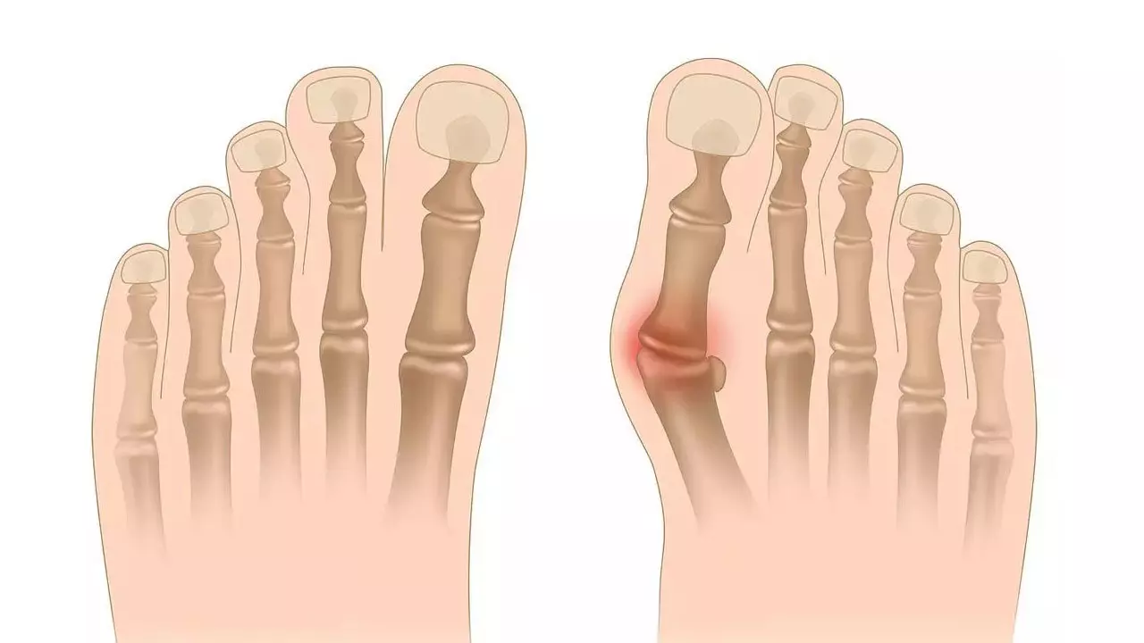 2. 발가락 오정렬: 엄지발가락이 바깥쪽으로 휘어집니다.