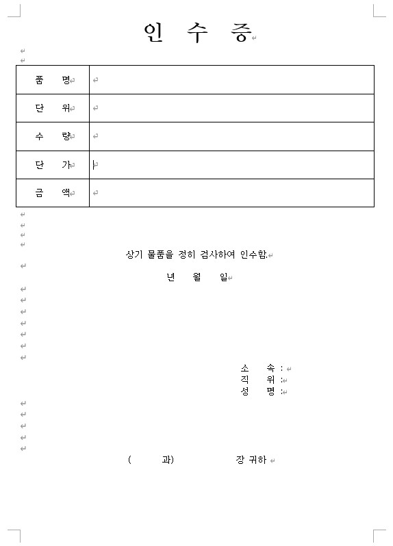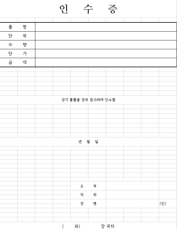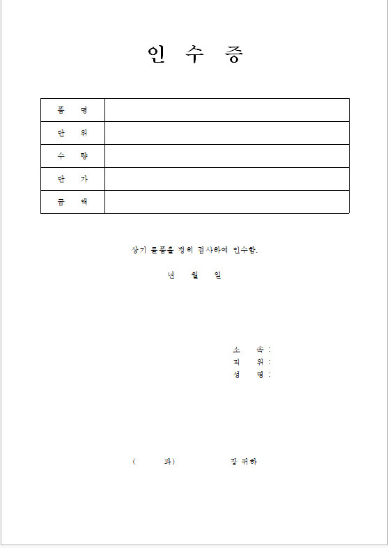 인수증 양식 다운로드