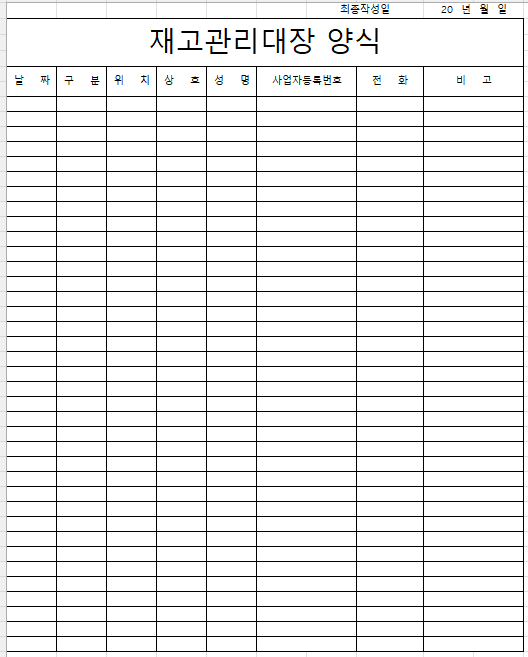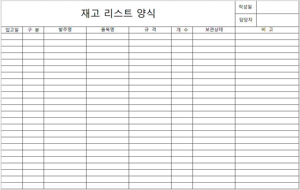 엑셀 재고 관리 양식