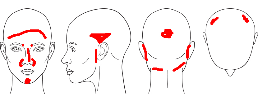저의 피부 염증 부위는 콧망울 주변, 눈썹 앞쪽, 구레나룻, 턱 수염 부위, 귓 바퀴, 귀 뒤쪽 부위, 이렇게 증상이 나오고 있고, 심할 때에는 귓 속, 콧 속까지 환부가 늘어 납니다.