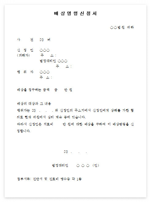 배상명령신청서는 피해자가 금전적 배상을 요구할 때 필요한 서식입니다. 최근에는 사기나 재산 피해 사건에서도 이를 활용하여 민사소송 없이 손해배상을 요구하는 사례가 증가하고 있습니다.