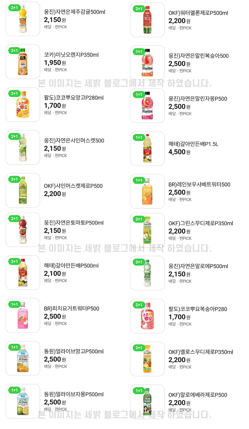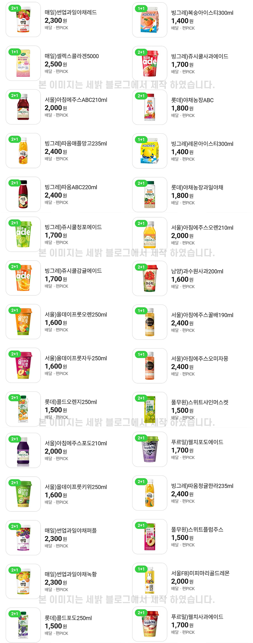 · 씨유 과즙 음료 종류 1+1, 2+1