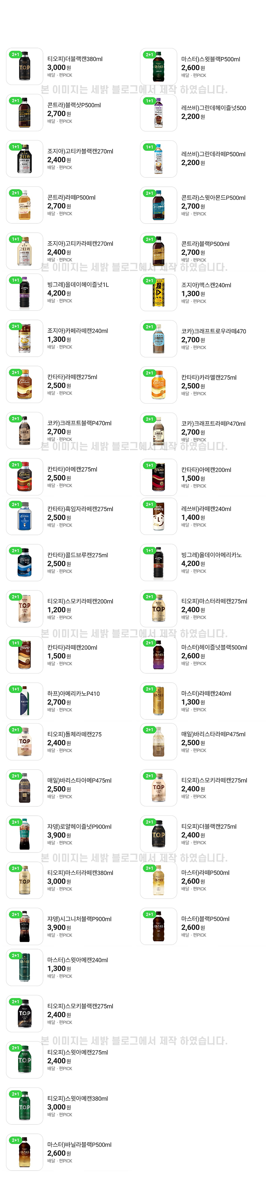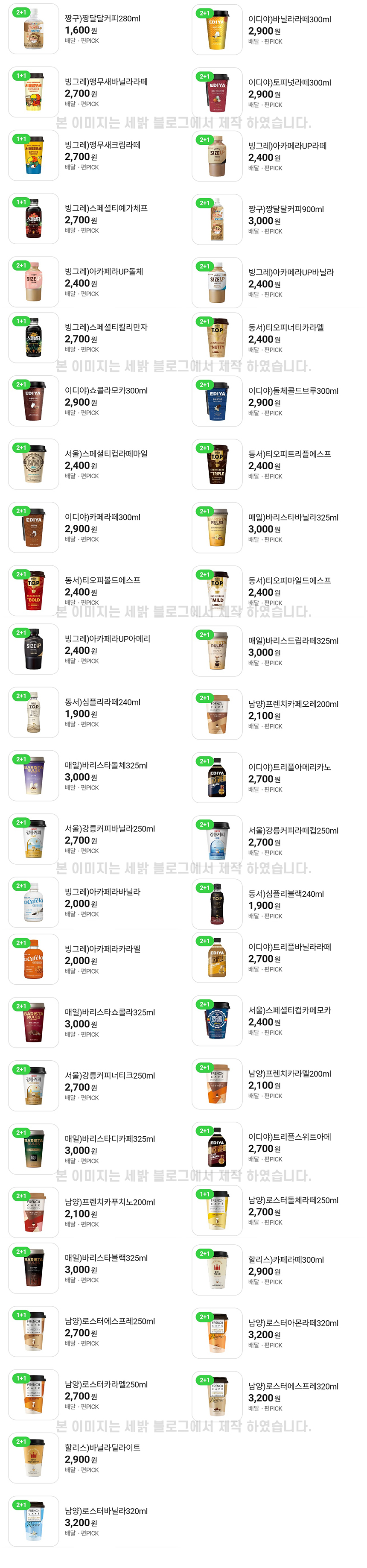 · 씨유 냉장 커피 종류 1+1, 2+1