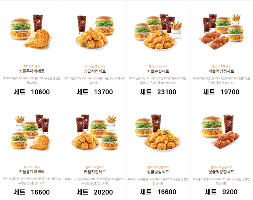 맘스터치 싱글 커플 세트 메뉴판 가격