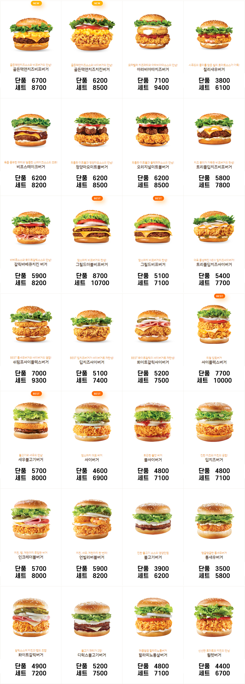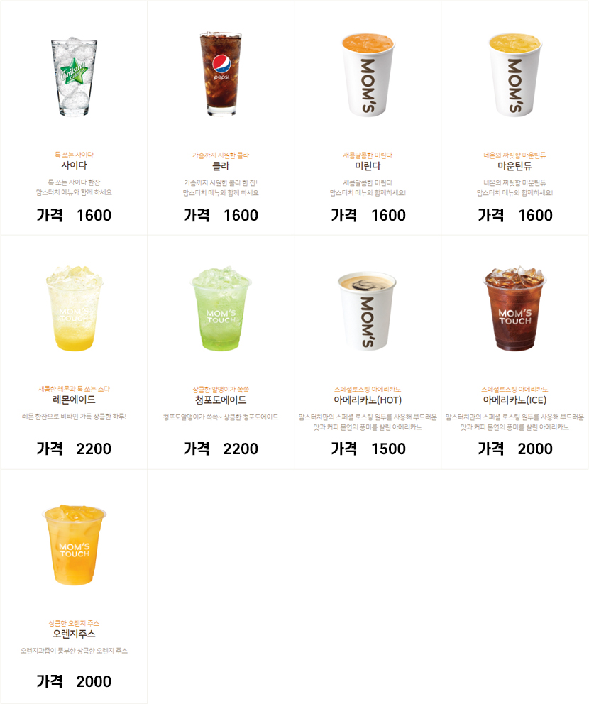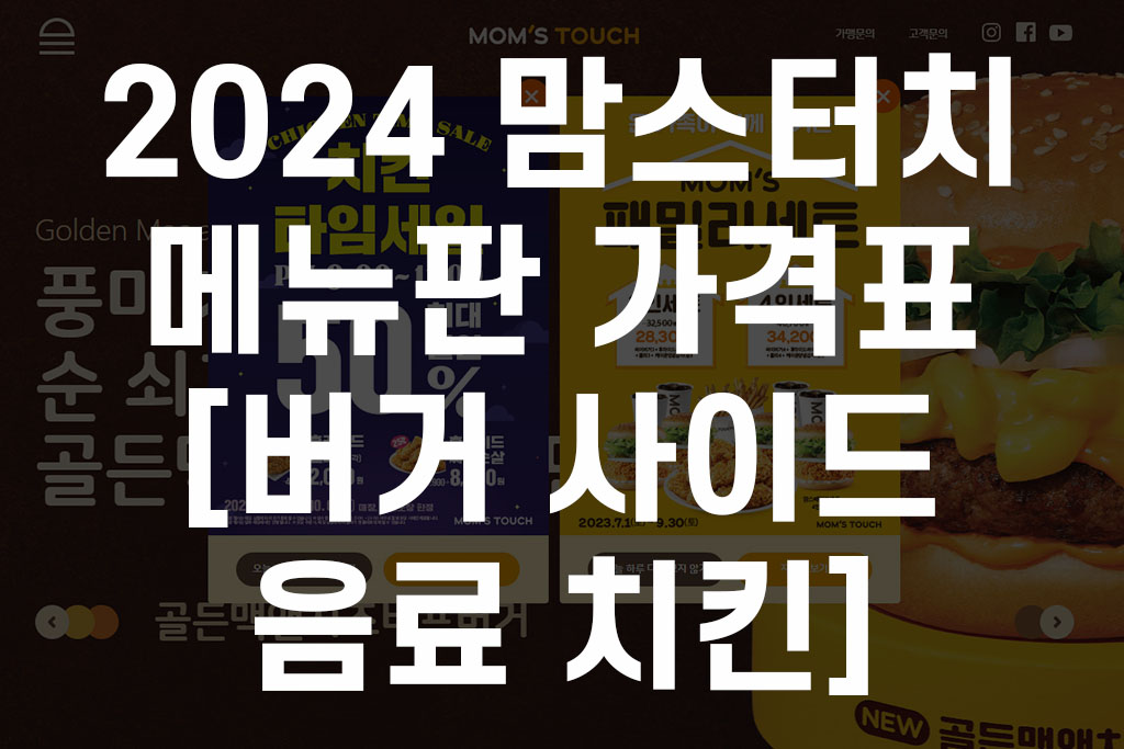 2024 맘스터치 메뉴판 가격표 [버거 사이드 음료 치킨]