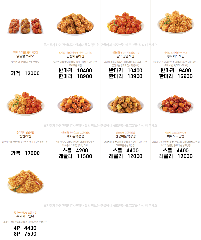 치킨은 반마리 주문이 되는 메뉴와 안되는 메뉴가 있습니다.