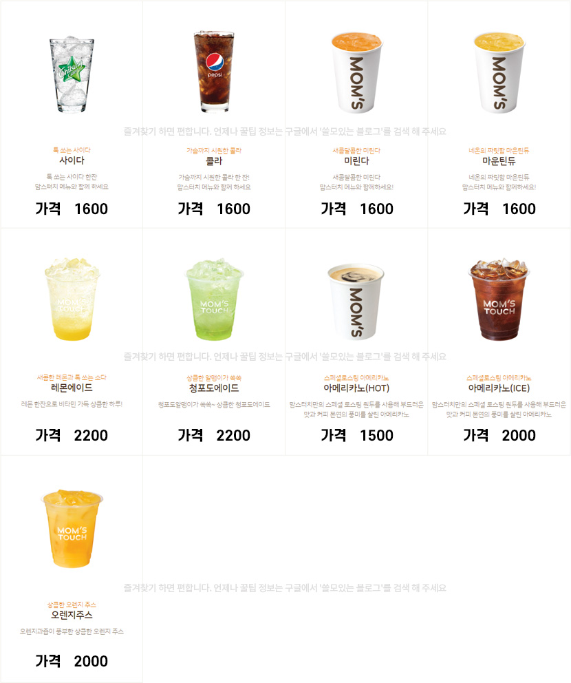 맘스터치 전 메뉴와 가격을 알아 보았습니다. 나날이 다르게 오르는 물가에 미리 메뉴를 확인해서 현명한 소비 하시길 바랍니다. 감사합니다 ^^