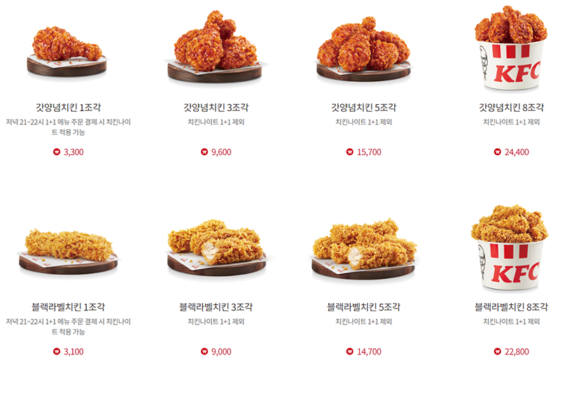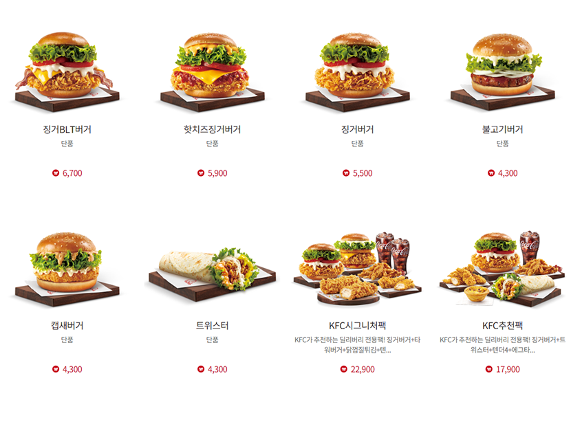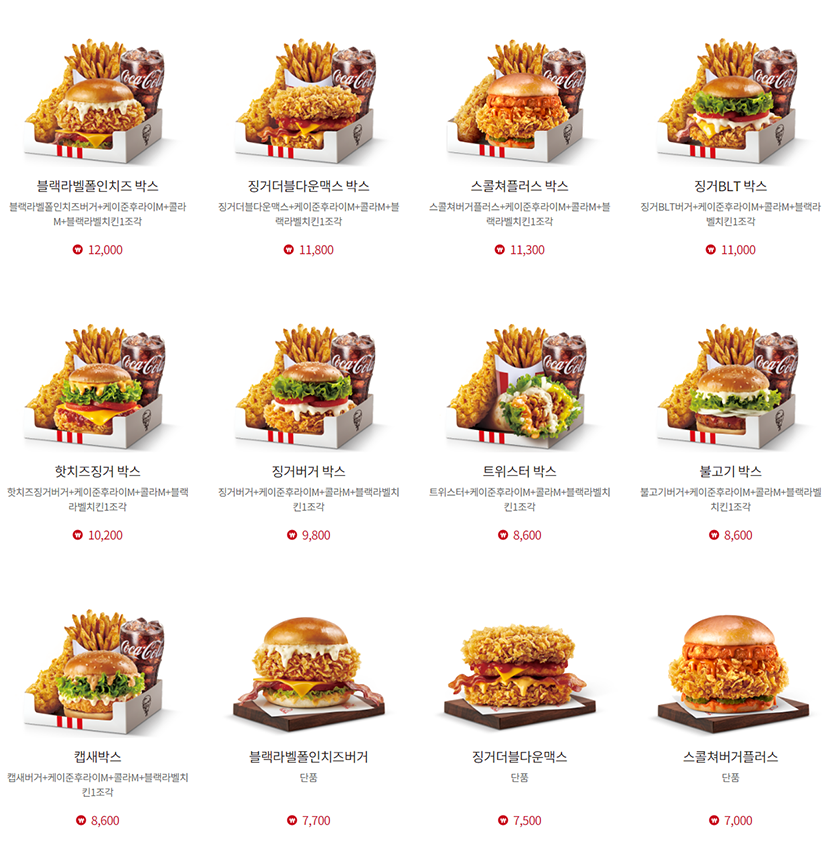 오늘은 KFC의 메뉴판을 준비해 봤습니다. 요즘엔 홈페이지를 가봐도 가격이 안 적혀있거나 옛날 가격이라 확인이 어려울 때가 있습니다. 보기 편하게 전 메뉴를 총정리해보았습니다.