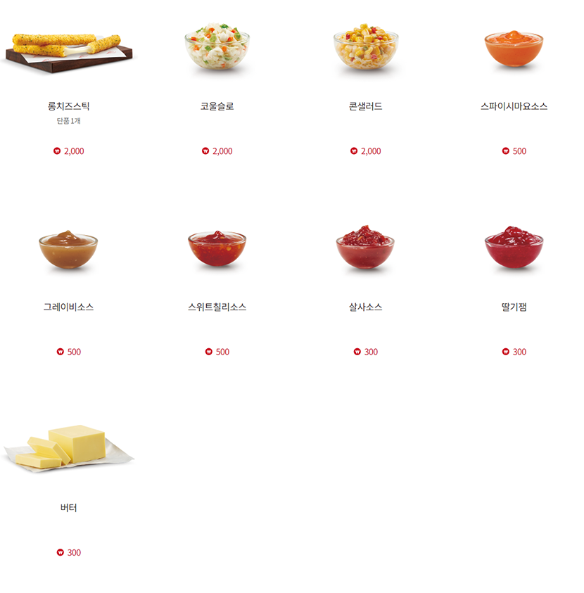 세트나 햄버거로는 양이 부족하시다면 사이드메뉴를 추가하셔서 드셔보세요. 에그타르트, 비스킷, 닭껍질 튀김 등 많은 메뉴가 있습니다.