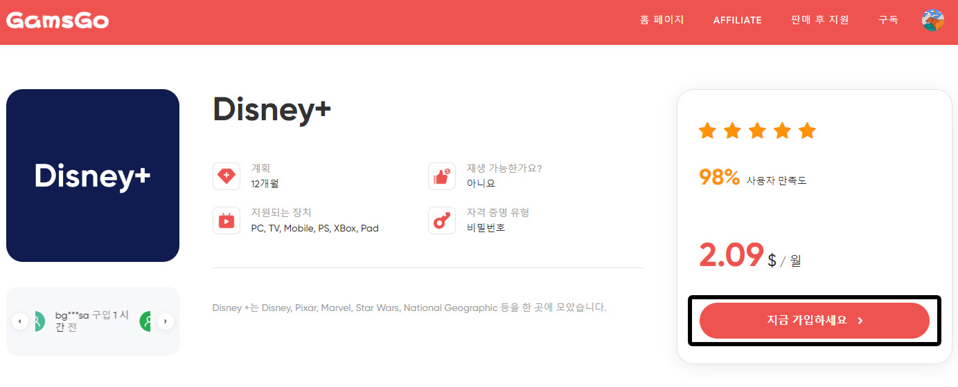 Gamsgo를 통한 디즈니플러스 이용은 매우 경제적이고 편리한 방법으로 꼭 많이들 활용해 보시기 바랍니다.